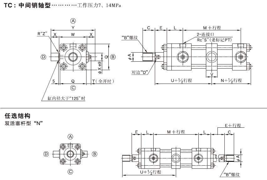 CJT70/140拉桿油缸-TC中間耳軸安裝