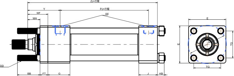 HMI/HMD重載拉桿油缸前拉桿安裝方式 代號:TB 符合標(biāo)準(zhǔn):ISO6020/2 (同力士樂(REXROTH)CDT3系列液壓缸,美國派克(PARKER)HMI/HMD系列油缸)