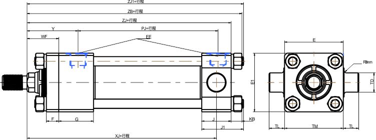 HMI/HMD重型拉桿油缸后鉸軸安裝 代號:DB 符合標(biāo)準(zhǔn):ISO6020/2(同PARKER油缸)