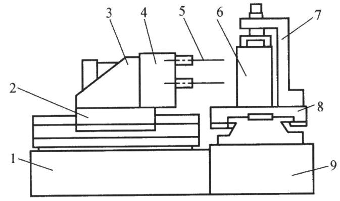 5.刀具; 6.工件; 7.夾具;8.工作臺(tái);9.底座