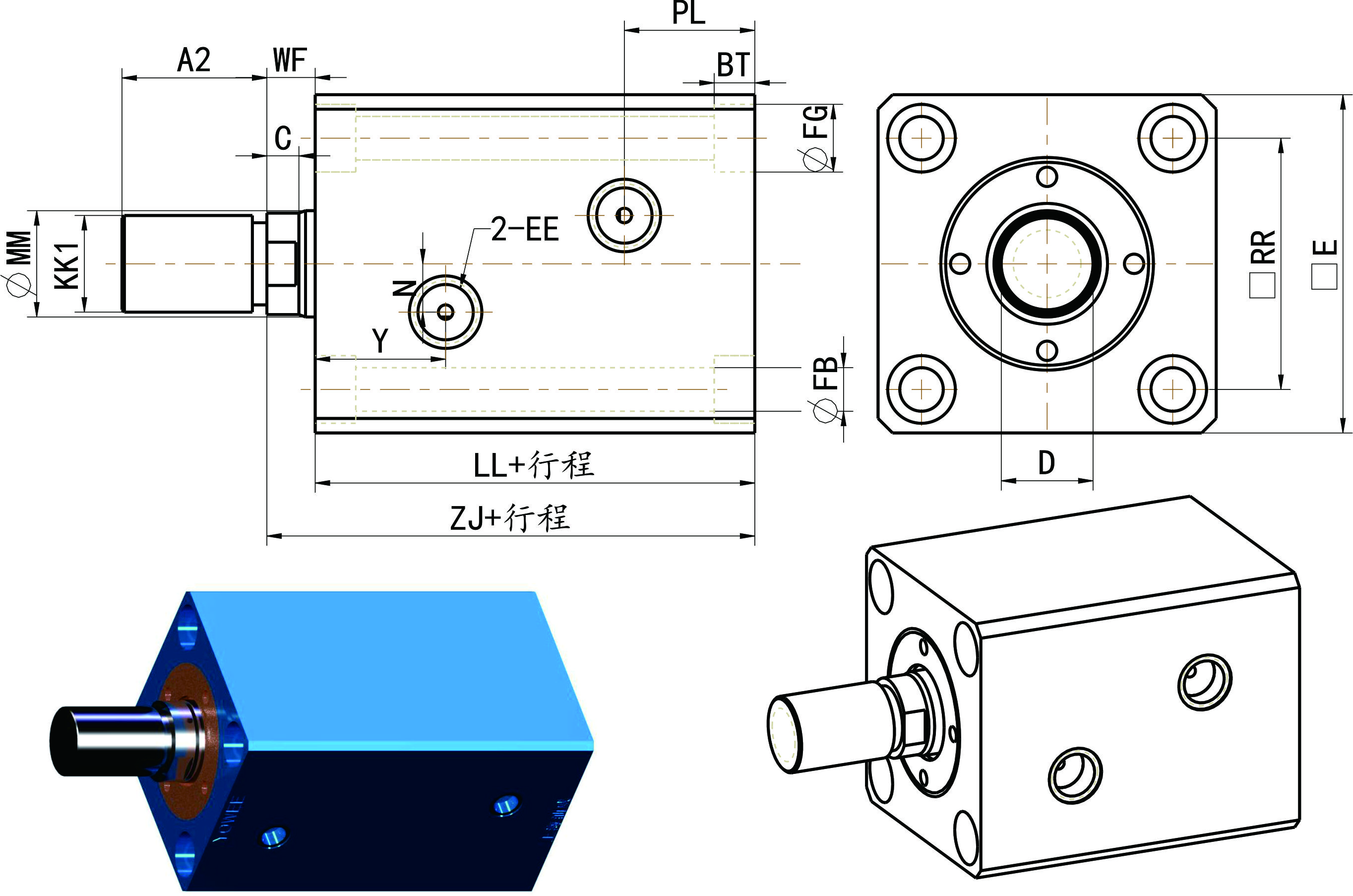 薄型油缸尺寸表-通用型貫通螺釘安裝