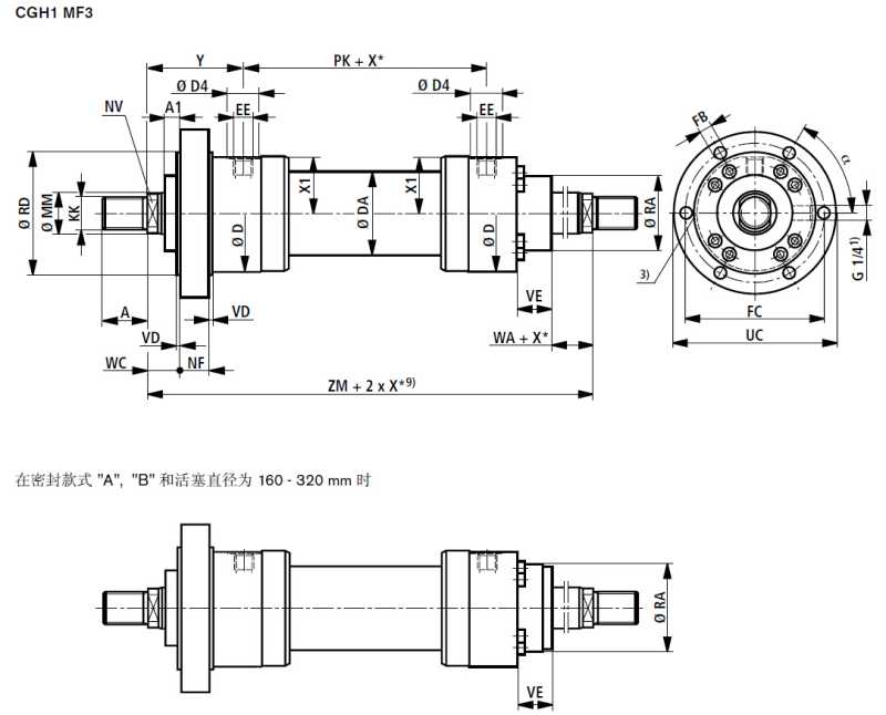 CDH1系列冶金油缸-MF3 前法蘭安裝