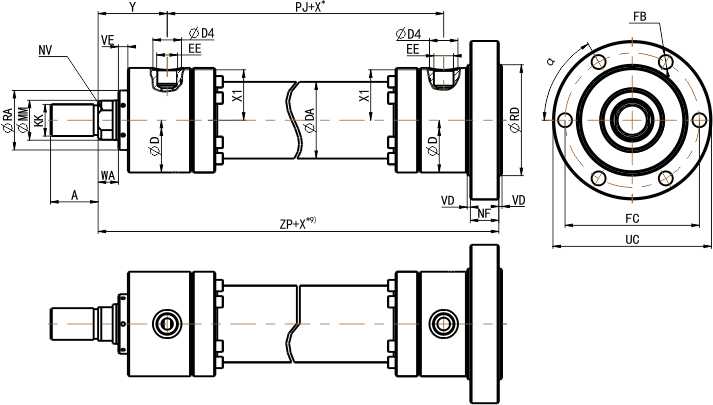 CDH1系列液壓缸前法蘭安裝方式,多用于垂直安裝。其他方向安裝時請注意活塞桿不宜承受徑向力。如果必須采用此種方式,最好考慮桿端連接有間隙,避免活塞桿受側向力。